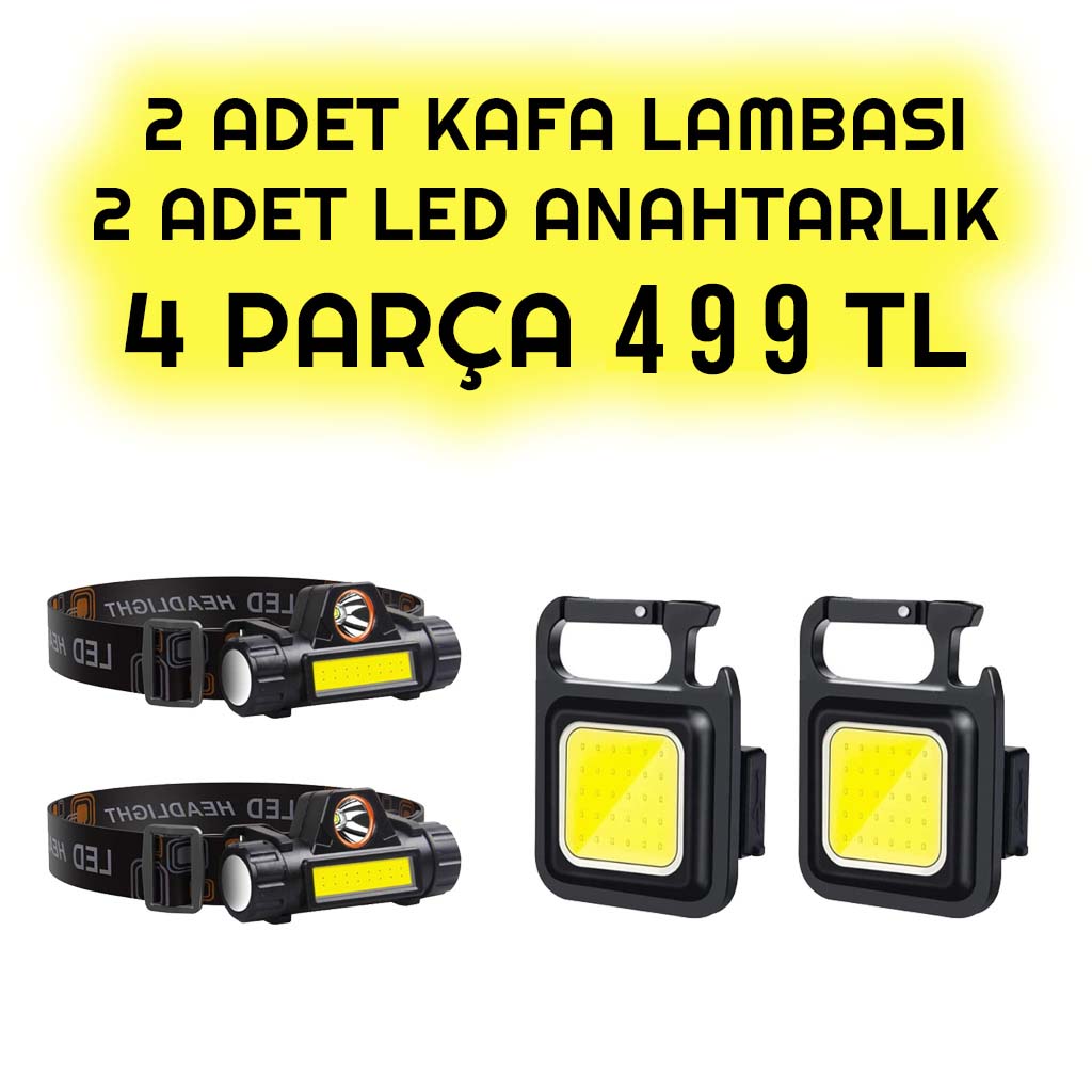 2 Adet KAFA LAMBASI 2 Adet LED ANAHTARLIK 4 Parça 499 TL